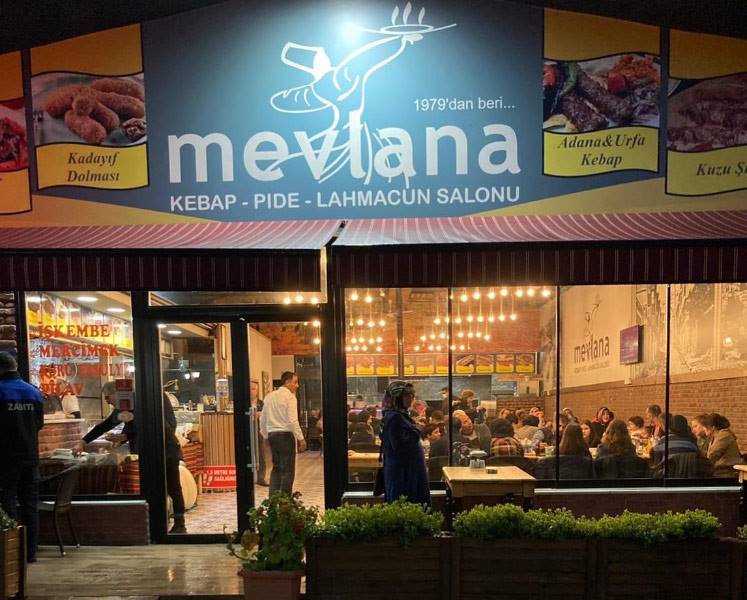 Pide Kebap ve Lahmacun Salonumuz, açık ve kapalı alanıyla toplam 150 kişi oturma kapasiteli olup, özel toplantı ve davetler için kullanımınıza açıktır. Şadırvan sokak’ta dev çınarın yanı başında dinlendirici bir atmosferi olan pide, kebap ve lahmacun salonumuza sizleri bekliyoruz. Mevlana Pide Kebap ve Lahmacun Salonumuz, Anadolu Mutfağı’mızın en nefis lezzetlerini sizler için kışın her gün 09.00 – 20.00 arası, yazın her gün 09.00 – 21.30 arası hizmetinizdedir.